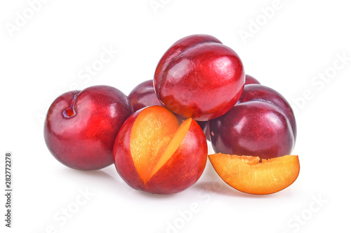 © RATMANANT, Obraz premium red cherry plum isolated on white background.