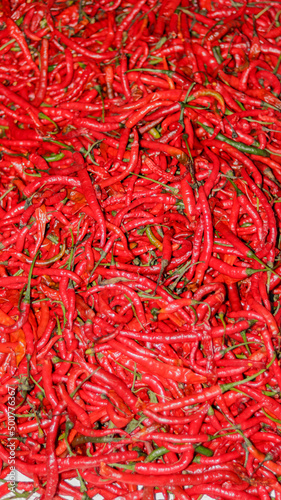 © arbi wiratama, Naklejka premium Red chili peppers close up - red chili in the supermarket