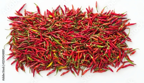 © artwiyanastudio, Naklejka premium Red chili peppers heap on white background