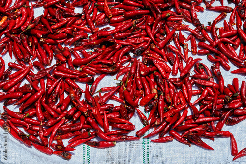 © Anucha, Naklejka premium red chili peppers on the white fertilizer bag