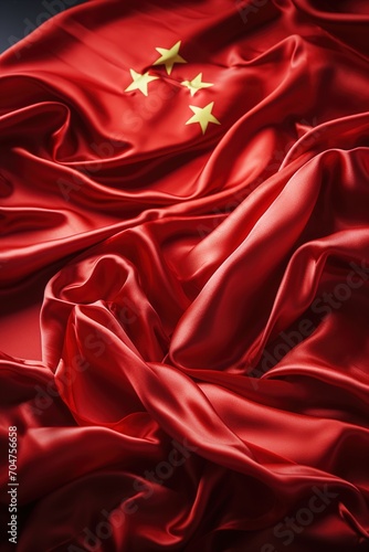 © duyina1990, Obraz premium Red Chinese flag made of silk with five stars