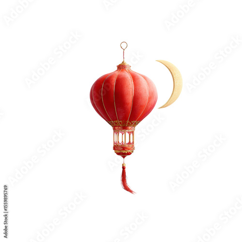 Obraz premium Red Chinese Lantern and Crescent Moon - Festive Asian Symbol