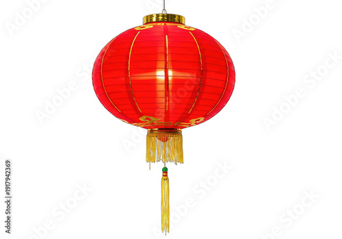 © Awi, Obraz premium Red Chinese Lantern with Gold Accents and Tassel