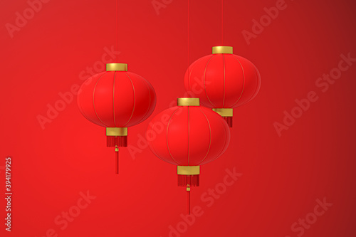 © Vink Fan, Obraz premium Red Chinese traditional lanterns background, 3d rendering.