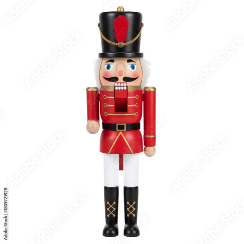 Obraz premium Red christmas nutcracker soldier toy isolated