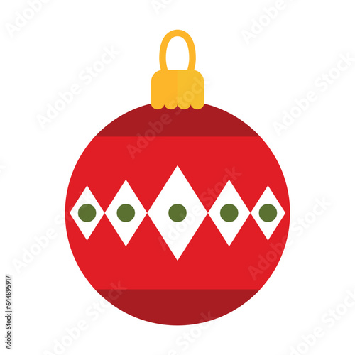 Obraz premium Red Christmas toy vector. Red glass ball patterned with diamonds and dots. Multicolored flat vector icon representing celebration concept isolated on white background