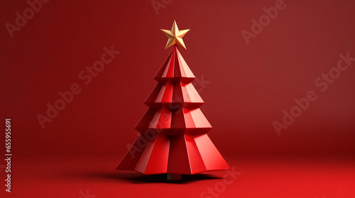 Naklejka premium Red christmas tree on red background for christmas decoration with shadow 3D...