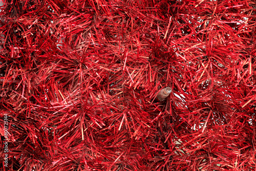 Fototapeta premium Red Christmas tree with red tinsel
