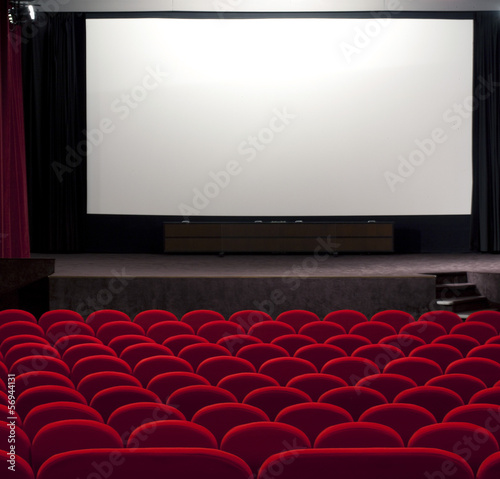© habrda, Obraz premium red cinema empty projection screen for insert a picture