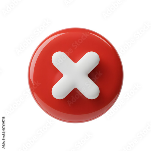 © Graphics Shop, Fototapeta premium Red circle button with white cross mark icon for rejection or close transparent background png