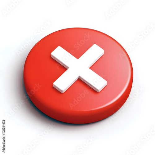 © virza, Obraz premium Red Circle Button with White Cross Symbol