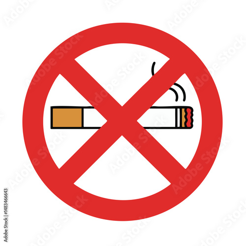 Fototapeta premium Red Circle No Smoking Sign with Cigarette Graphic