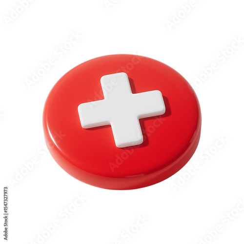 © Sayed, Obraz premium Red circle plus icon 3d render isolated on transparent background