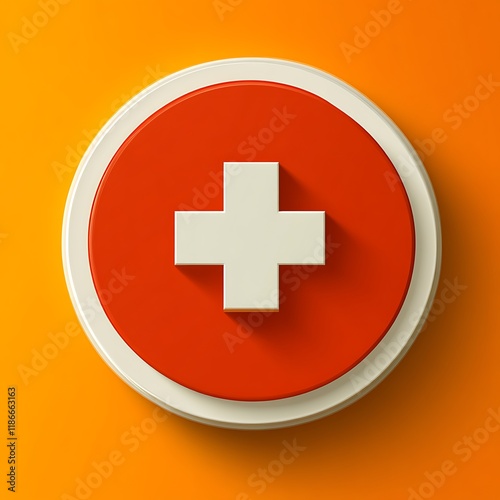 Obraz premium Red Circle Plus Sign: Minimalist Medical Icon Design