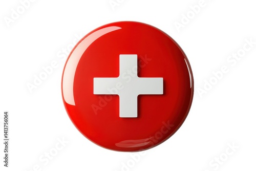 Obraz premium Red circle with white cross symbol on white background