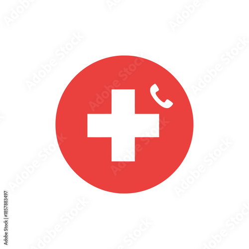 Fototapeta premium Red Circle with White Medical Cross and Phone Icon - Emergency Medical Help
