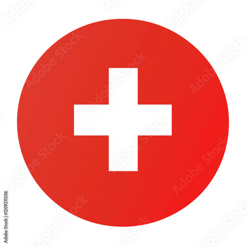 Obraz premium Red circle with white plus symbol,simple flat design,minimalist,PNG,transparent background.