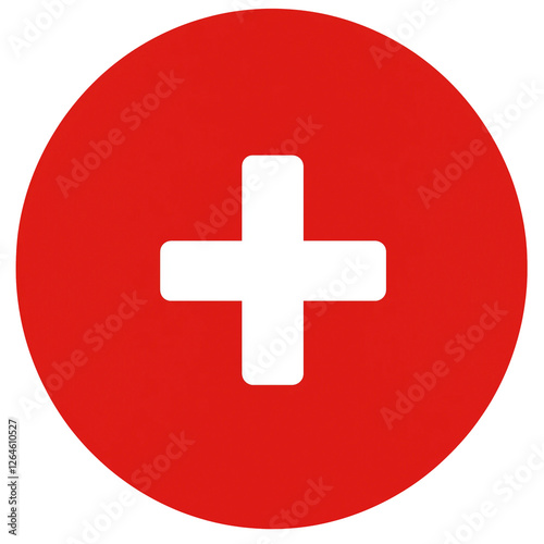 Obraz premium Red circle with white plus symbol,simple flat design,minimalist,PNG,transparent background.
