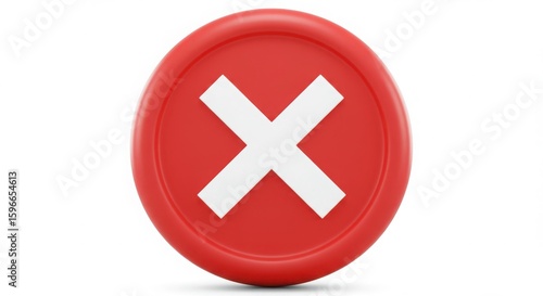 Obraz premium Red circular button with a white cross symbol isolated on white background