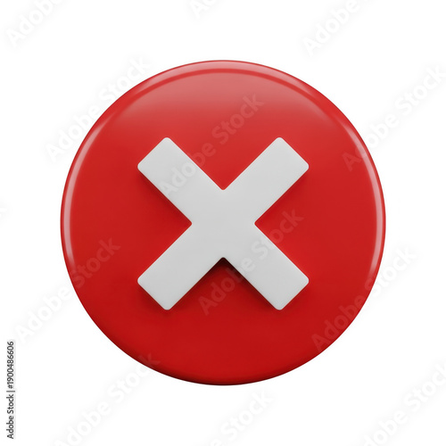 © BD STOCK, Fototapeta premium Red circular button with a white diagonal cross symbol indicating prohibition or cancellation
