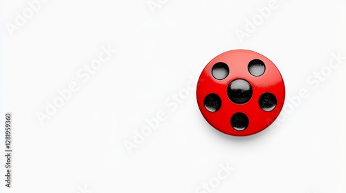 © KAMOLPOP, Fototapeta premium Red Circular Button with Black Dots on a Clean White Background
