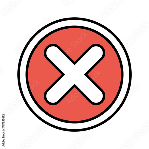 Fototapeta premium Red circular glossy button with a white cross and a drop shadow for web design