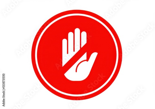 Fototapeta premium red circular sign, white hand symbol, stop gesture, traffic warning, flat design, minimalist icon, bold graphic, safety