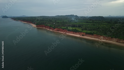 © Phamtom Sky FPV, Fototapeta premium Red cliff is contrasting with the green