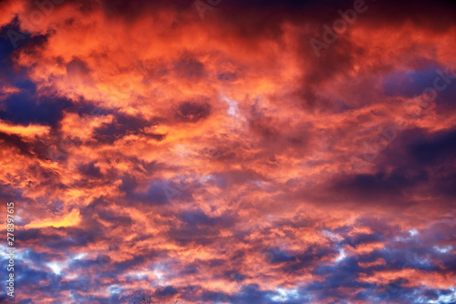 © Igor Ullman, Fototapeta premium Red clouds at sunset, fire on black background