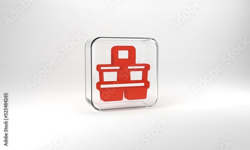 Obraz premium Red Coffee cup to go icon isolated on grey background. Glass square button....