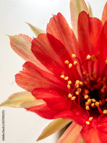 © Satakorn, Fototapeta premium Red color delicate petal with fluffy hairy of Echinopsis Cactus flower