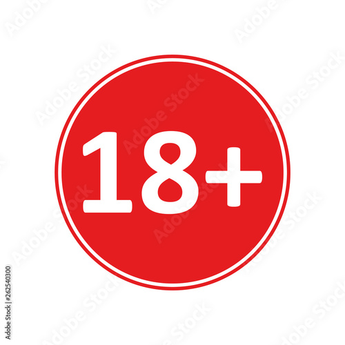 © jenja, Fototapeta premium Red color eighteen plus icon vector eps10. Age limit eighteen plus
