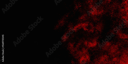 © Mr Jishana, Obraz premium Red color powder explosion isolated on black background. Colorful dust explode. Paint Holi, dust particles splash. Network concept with spray. Futuristic technology element. 3D rendering.