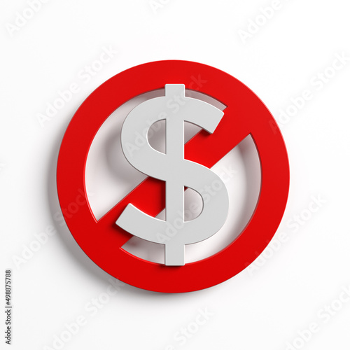 © MicrostockFactory, Obraz premium Red-colored banned sign and dollar symbol. On white-colored background. Square composition with copy space. Isolated with clipping path.