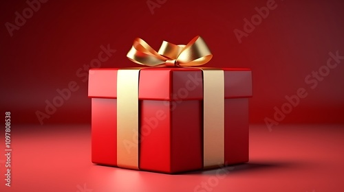 © Huzaifa, Fototapeta premium Red-Colored Gift Box on a Plain Background