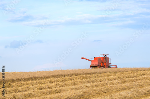 Fototapeta premium Red combine harvesting