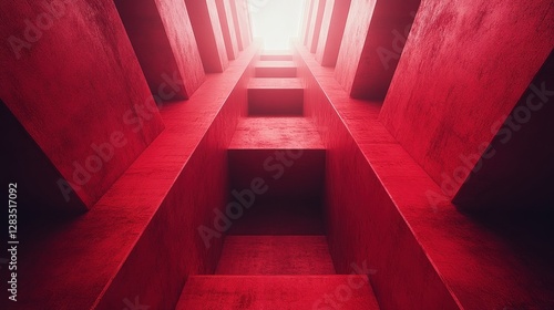 © TITISCAHYA, Fototapeta premium Red concrete interior, upward perspective, light source, architectural structure