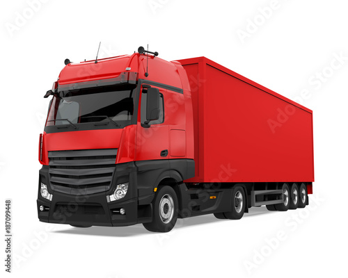 © nerthuz, Fototapeta premium Red Container Truck Isolated