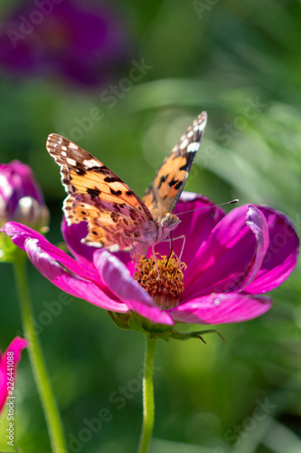 © 政昭 大橋, Naklejka premium Red cosmos and butterfly (high brown fritillary), Funabashi-city, Chiba prefecture, Japan