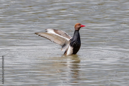 © Arpad, Fototapeta premium Red-crested pochard - male bird at a small pond in spring. Parc Natural dels Aiguamolls de l'Empordà, Catalonia, Spain