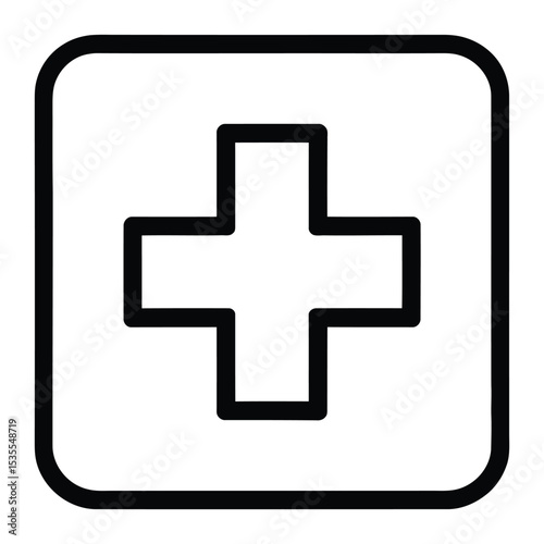 Obraz premium Red Cross Icon, Vector, Illustration, Icon, Outline, Line Art, Silhouette, Logo, White Background.