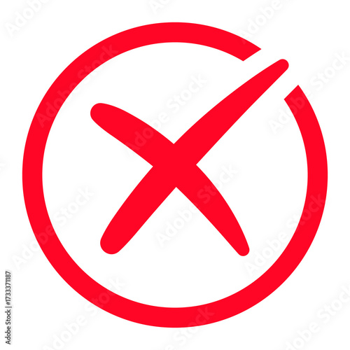 Fototapeta premium Red cross inside outlined circle, bold cancel or reject error symbol for...