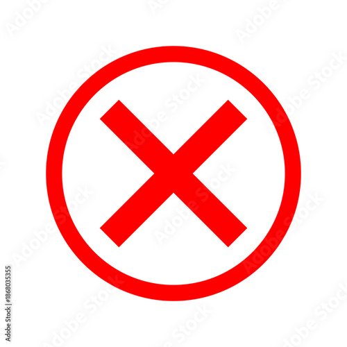 Fototapeta premium Red cross mark inside a circle, simple error or wrong symbol, isolated on white background, vector