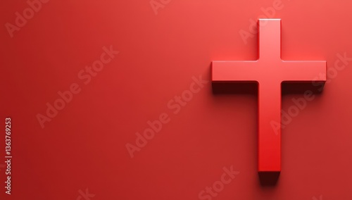 Obraz premium Red cross on red background, faith concept