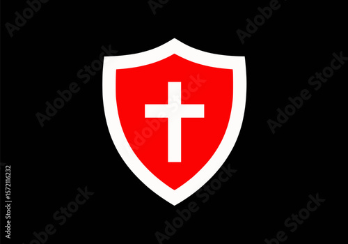 Obraz premium Red Cross Protection Shield Symbol