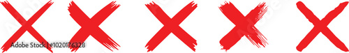 Obraz premium Red cross sign set. Wrong mark collection. Red cross X symbol. Red grunge X icon. Cross brush signs - stock vector.