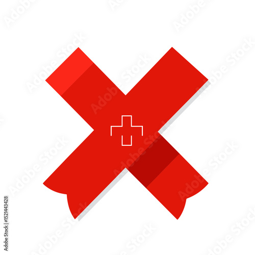 © wendy, Fototapeta premium Red Cross Symbol with Plus Sign in Center Icon Design on White Background