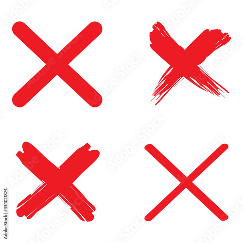 Obraz premium Red crosses. Check mark icon isolated. Tick icon. Ink illustration. Vector illustration. Stock image.