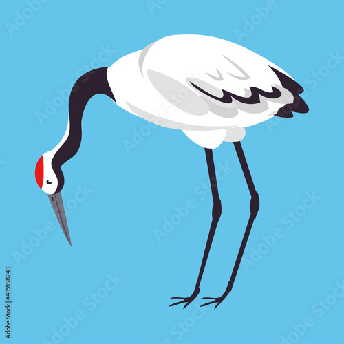 © topvectors, Fototapeta premium Red Crowned Crane as Long-legged and Long-necked Bird Standing on Blue Background Vector Illustration