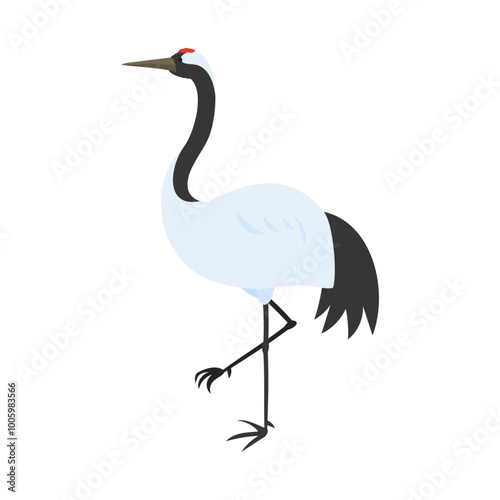 © nagamushi studio, Fototapeta premium タンチョウヅル。フラットなベクターイラスト。 Red-crowned crane (manchurian crane). Flat vector illustration.
